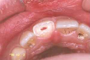 Jag har här borrat in ca 2 mm och preparerat med high-speed för att senare göra